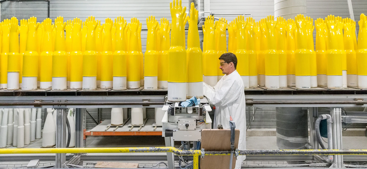 Polyurethane and Chlorosulfonated Polyethylene Glove (Poly/CSM) one-piece glove has a high resistance to UV, Ozone, ionizing radiation and a strong resistance to disinfectants used in the life science and nuclear industries.